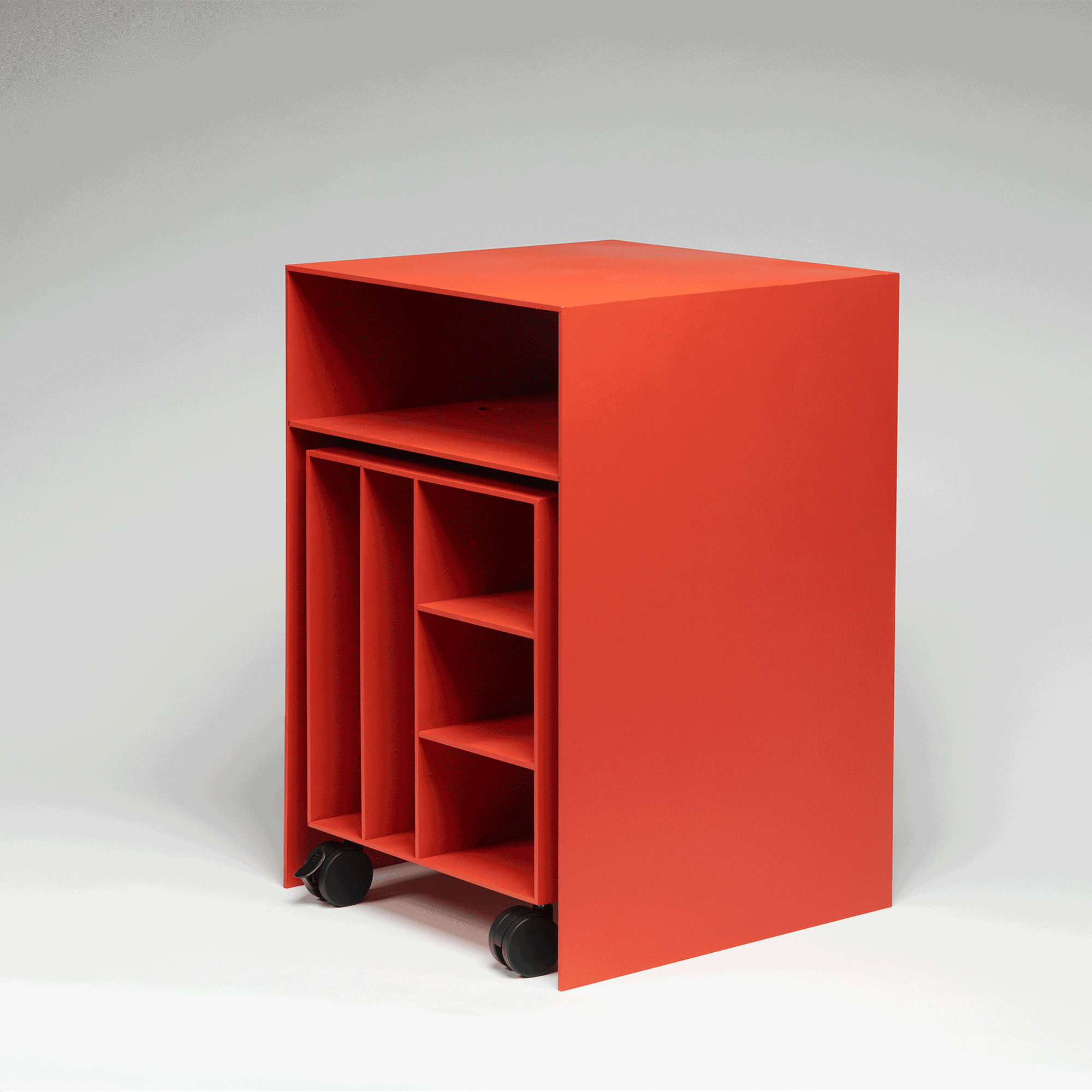 A trolley sidetable for a vinyl player, and to store your synthesizers.